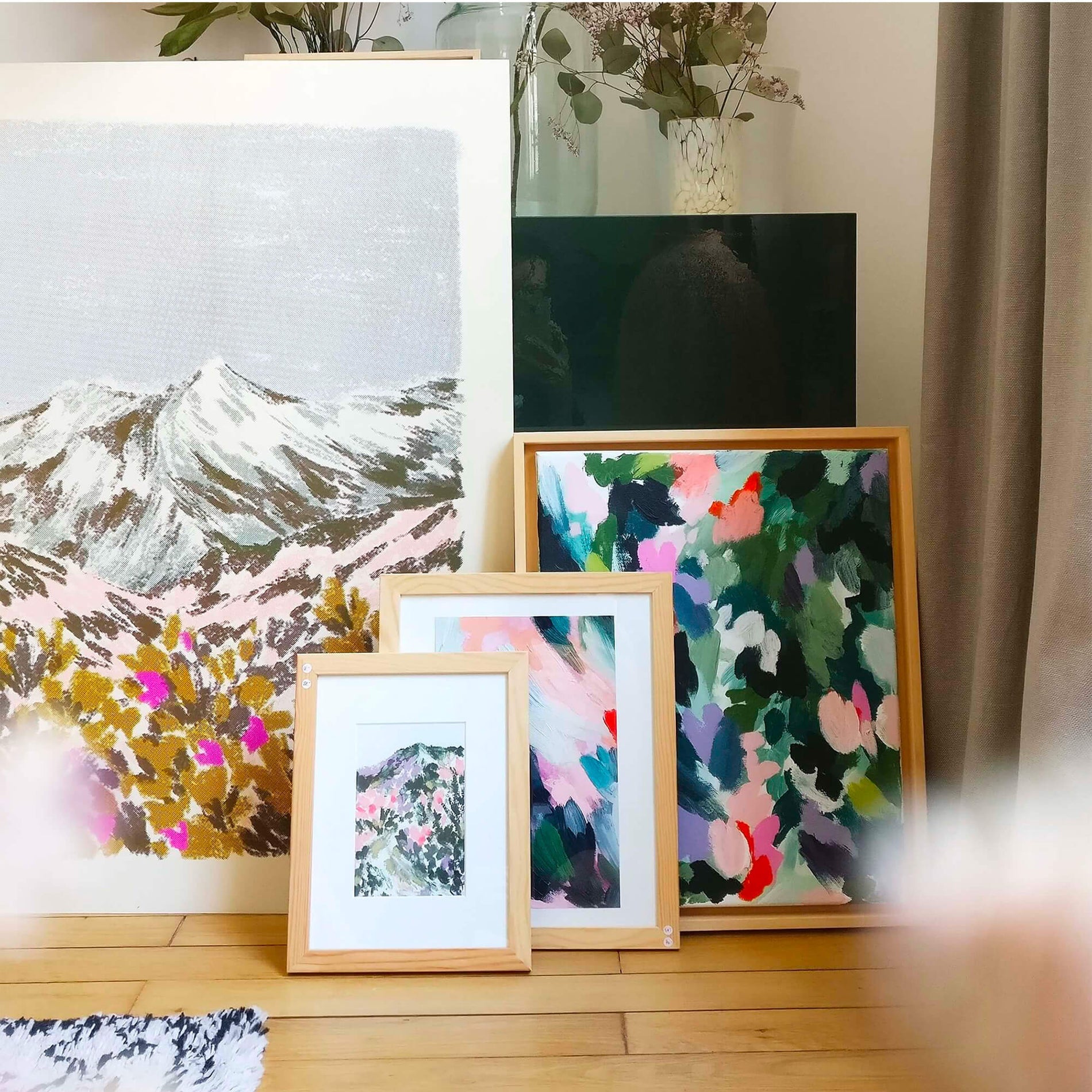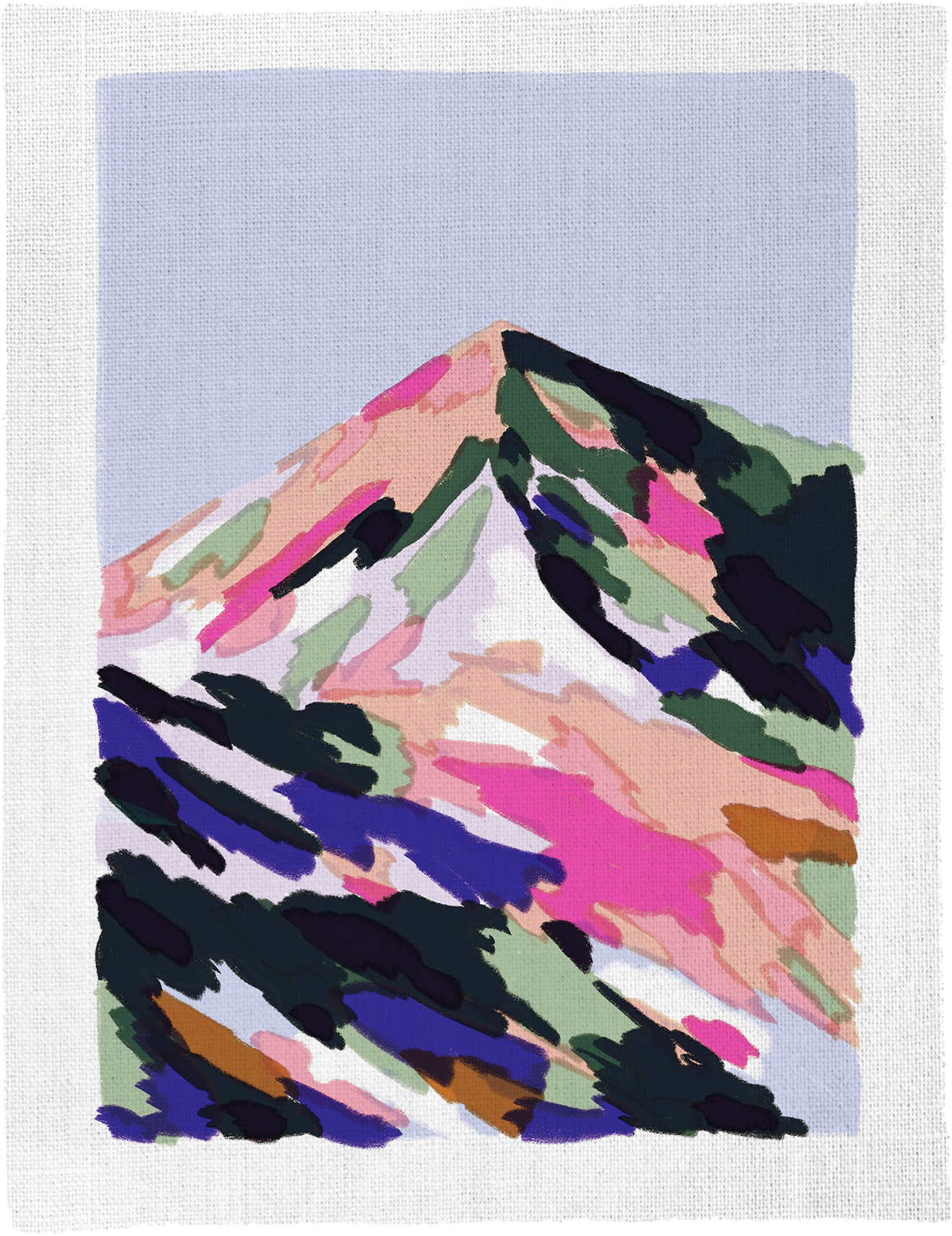 Superbloom est une série d’illustrations inspirée du phénomène du même nom, résultat d’une éclosion spectaculaire de fleurs sauvages dans le désert de Californie. Entre paysages imaginaires et monts ardéchois, Claire nous transporte, entre lavandes et fleurs de genêt, comme un souvenir de vacances flou et chatoyant. Aujourd’hui designeuse textile pour l’ameublement, parurière florale et formatrice en sérigraphie artisanale, ses pastels sont une façon de renouer avec ses premiers amours : la couleur dense, vive, éclatante et le geste du peintre.